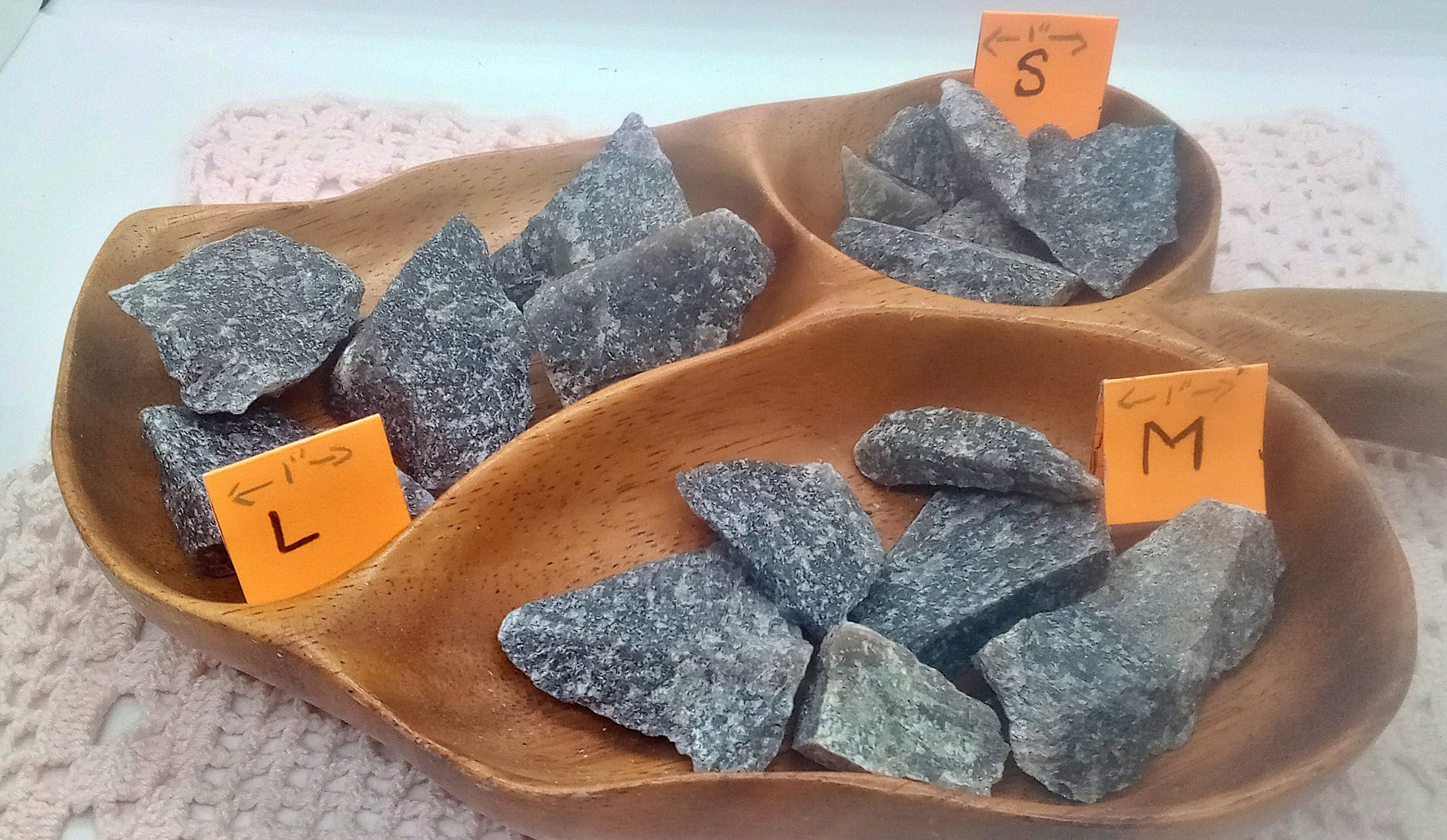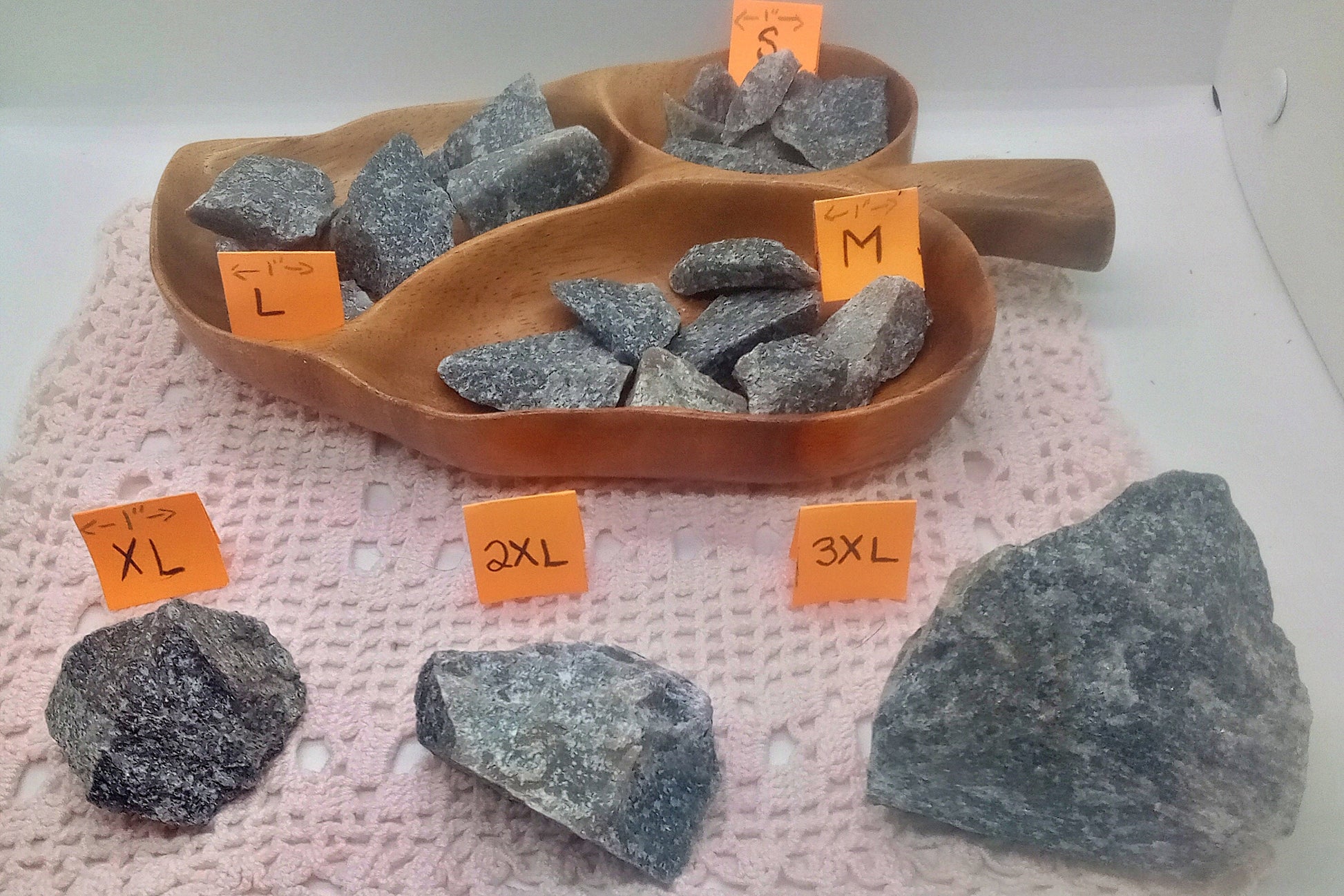 Welcome to SunnysSoulStones! Truly, thank you for stopping in; we’re glad you found your way here. Photos #4-#9 are of each size from our largest to smallest.