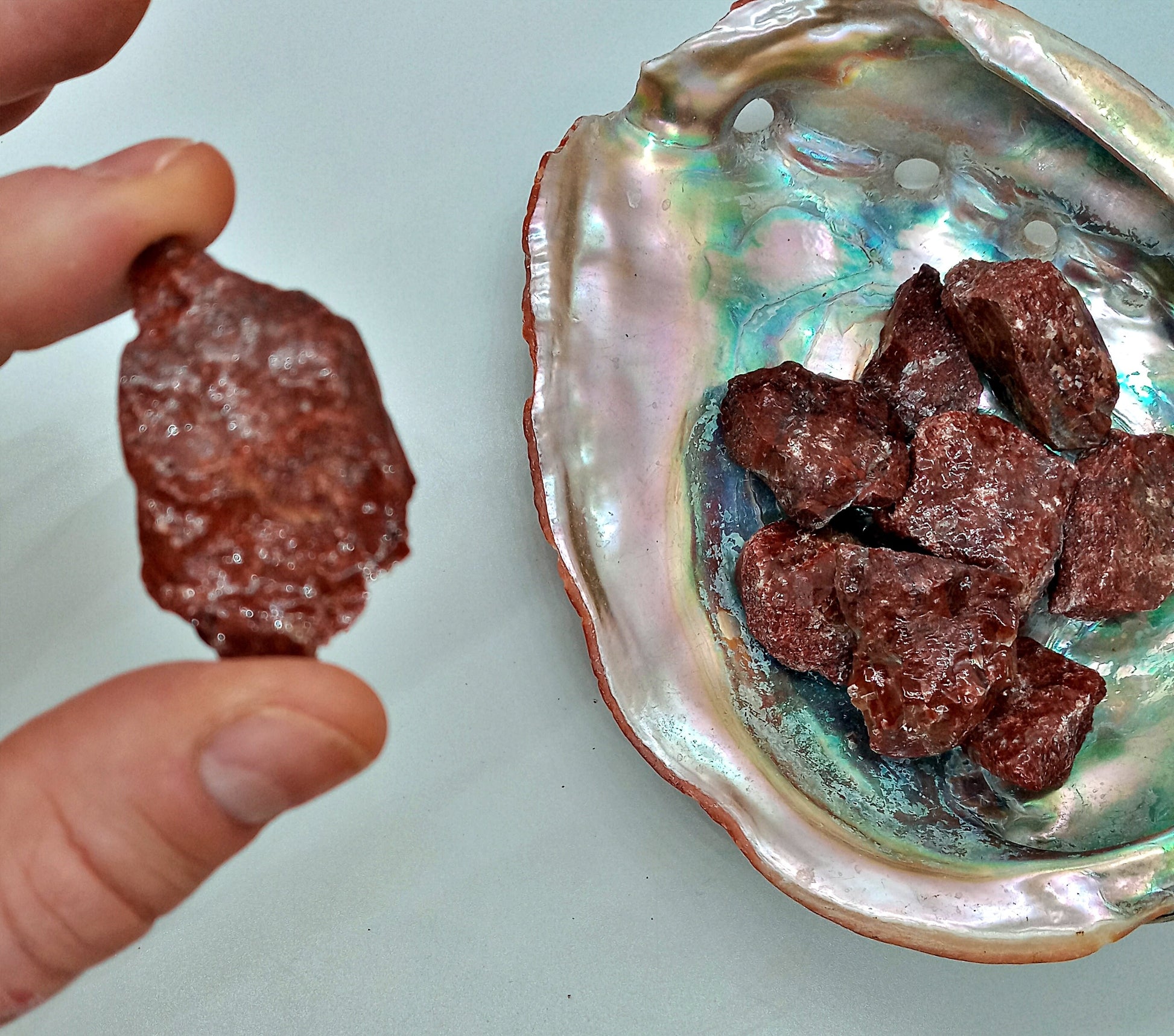 This is our listing for rough/raw Dragon’s Blood Calcite which is sometimes called Blood-Red Calcite for some reason – but with a name like Dragon’s Blood, why would you go with anything else?