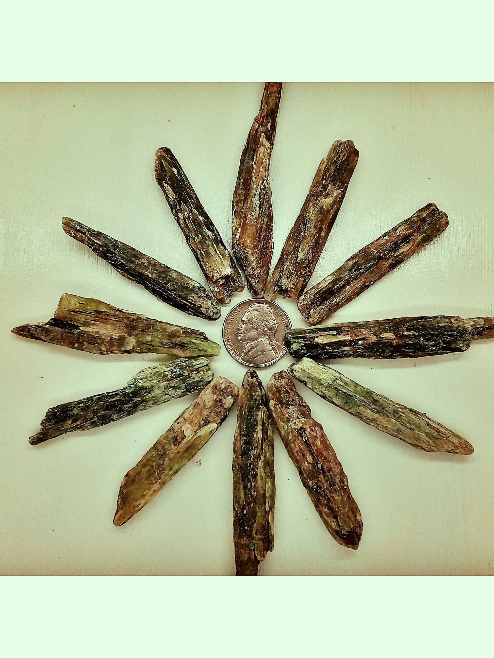Green Kyanite Crystals! Choose from two (2) sizes of quality, all-natural, raw, Green Kyanite fans and blades!