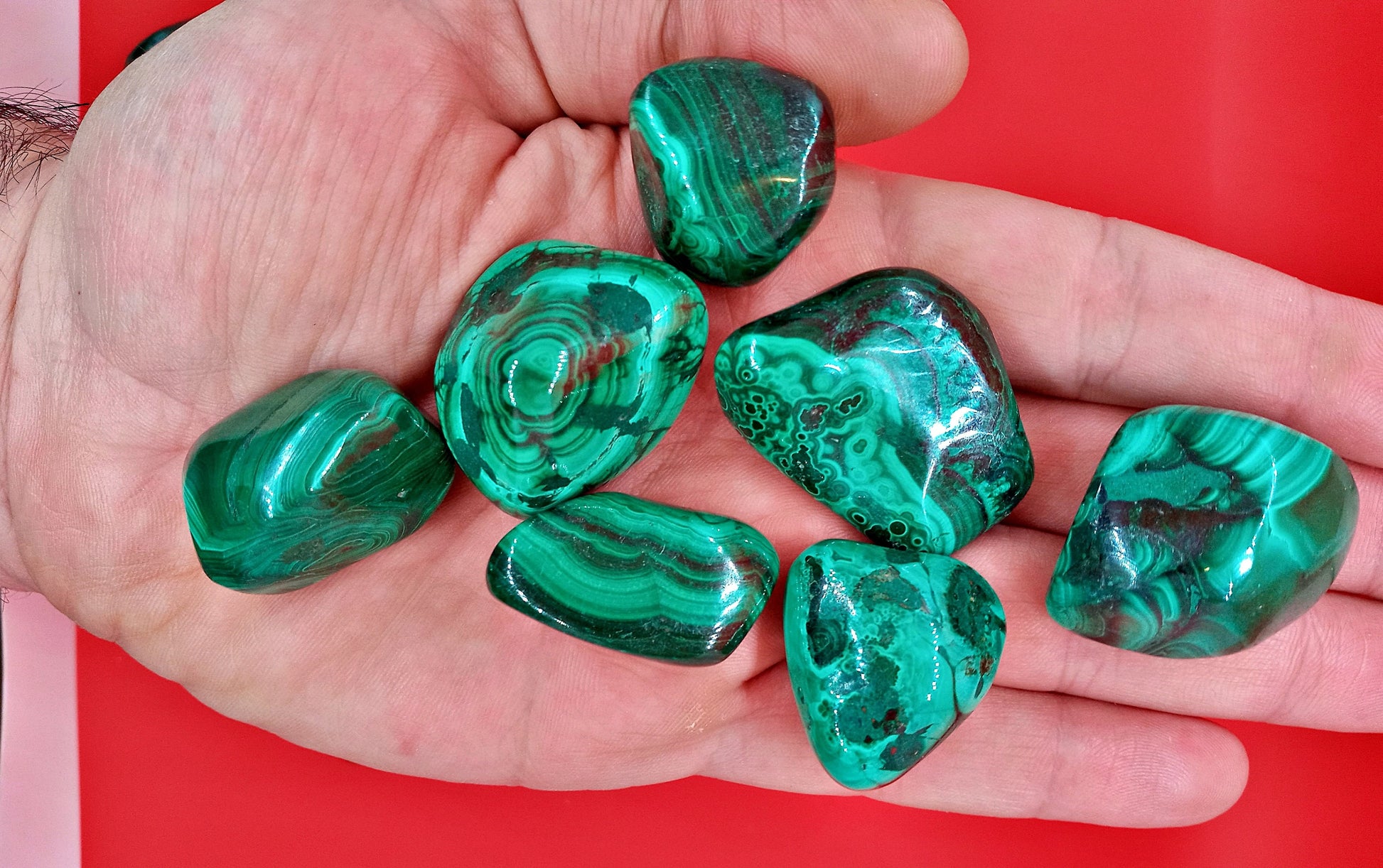 XQ Malachite! Choose from five (5) sizes of AAA-Grade, natural, tumbled Extra High-Quality Crystals. Premium Polished pocket stones.